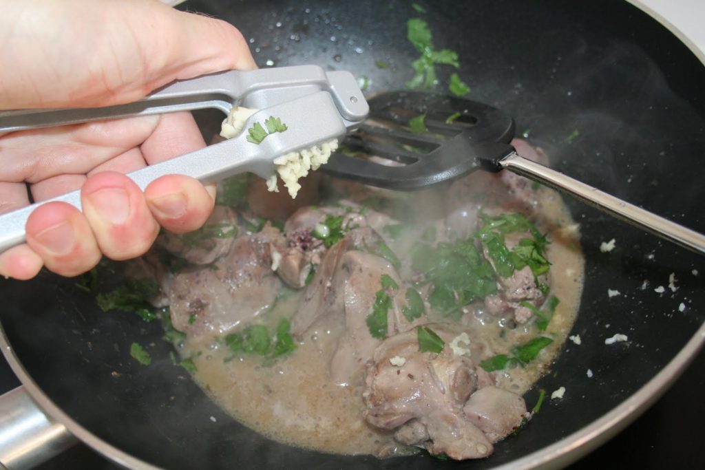 - Ajouter la gousse d'ail écrasée ou hâchée menue.