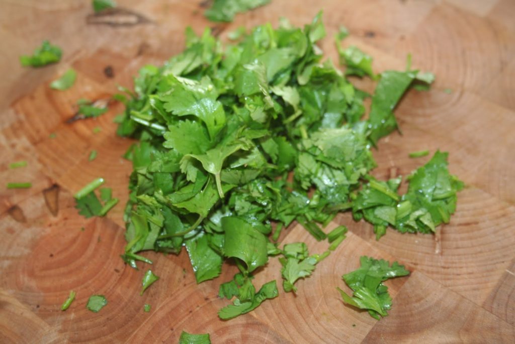 - Couper la coriandre et le persil plat.