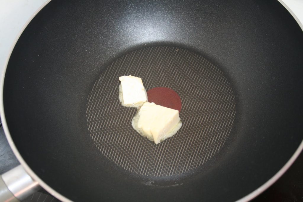 - Mettre le beurre dans une poêle sur feu modéré à vif (entre les deux!).