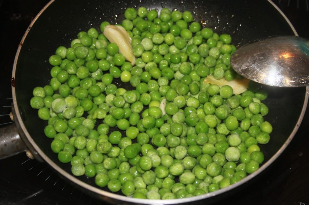 Ajouter les petits pois. J’ai acheté des petits pois congelés. D’ailleurs, à ce propos, Picard en fait de très bons, les « garden peas », plus gros et plus sucrés. C’est ceux là que j’ai utilisés pour la recette !