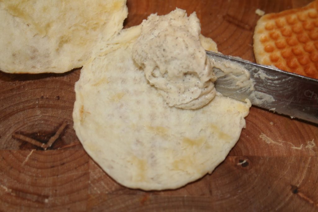 Et l’étaler au couteau de façon uniforme. Refermer la gaufrette comme un sandwich.