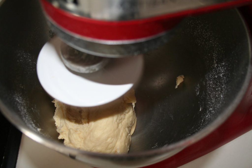 - Mettre en route (ou si pas de machine, il faut pétrir à la main!) et pétrir la pâte 10 minutes.