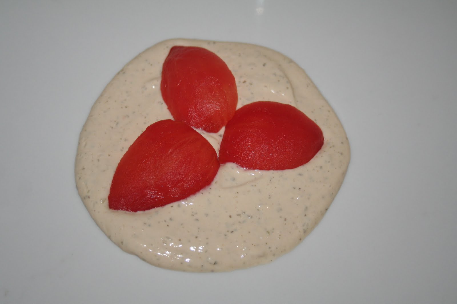 Pour le montage final, réchauffer les gnocchis au micro-ondes (sauf si l’on décide de les cuire à la dernière minute!), pour qu’ils soient bien chauds, et réchauffer de la même façon, les pétales de tomates. On peut soit acheter du tahina déjà préparé. Sinon il suffit d’acheter de la crème de sésame.