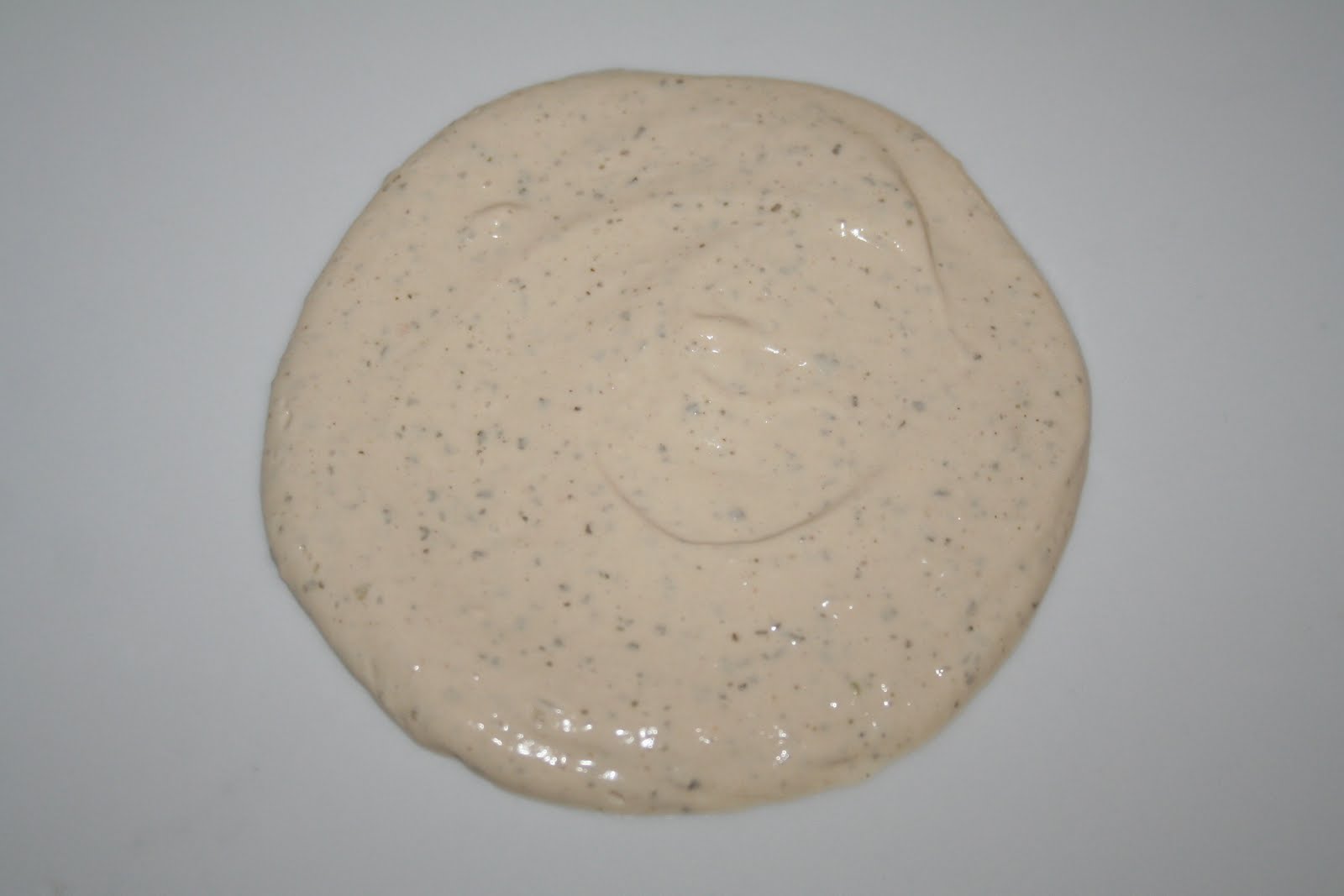 Dresser chaque assiette avec un lit de une ou deux cuillerées à soupe de tahina étalé, (le mien contenait quelques herbes).