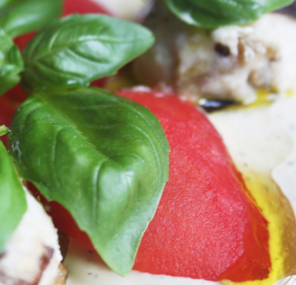 Cinq ou six gnocchis d’aubergines et les feuilles de basilic.