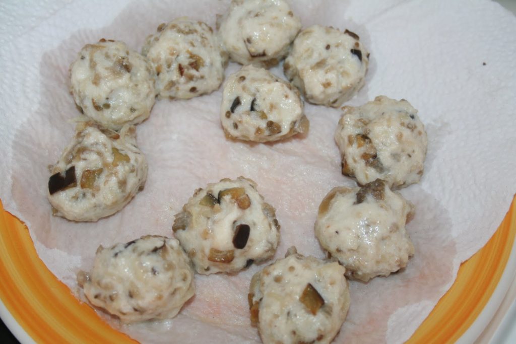 Bien mélanger et laisser reposer au moins Une heure au frais (ce pour raffermir le mélange et faciliter le façonnage des boulettes!).