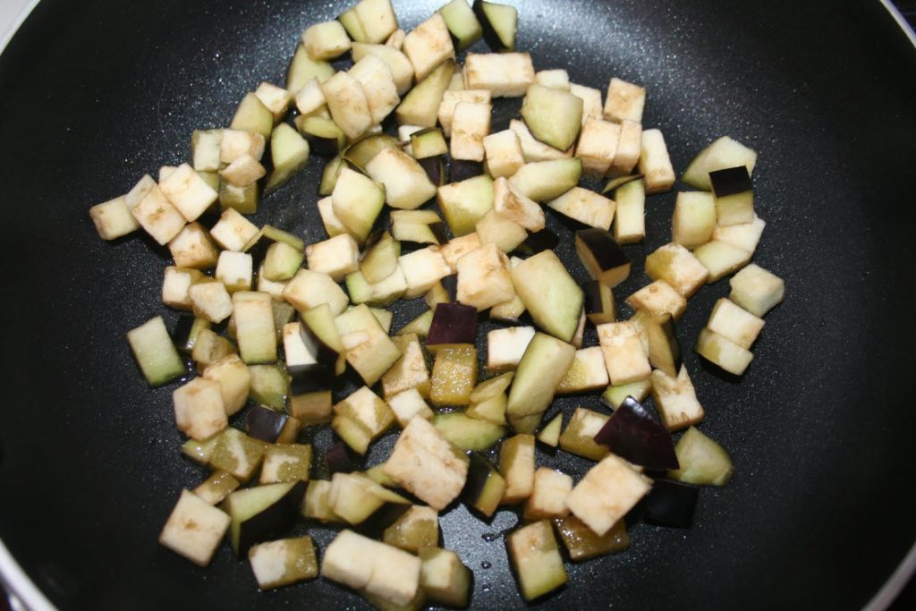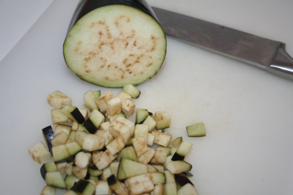 Laisser refroidir complètement avant de manipuler. Prélever la chair de l’aubergine et placer dans un récipient.