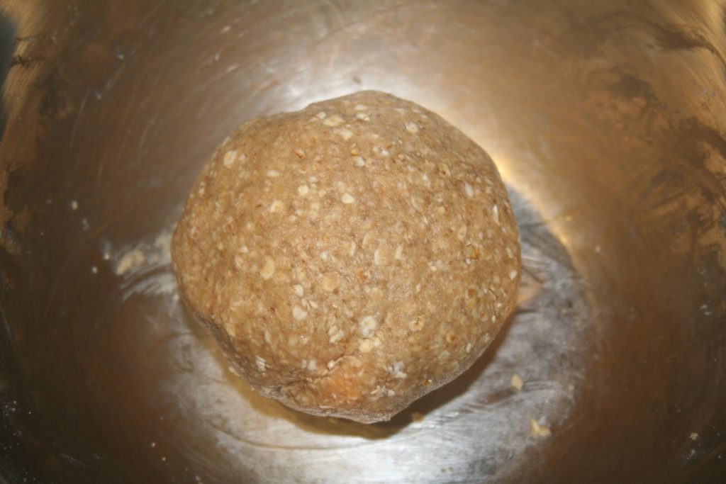 - L’incorporer au mélange sec. Bien mélanger et faire une boule avec la pâte.
