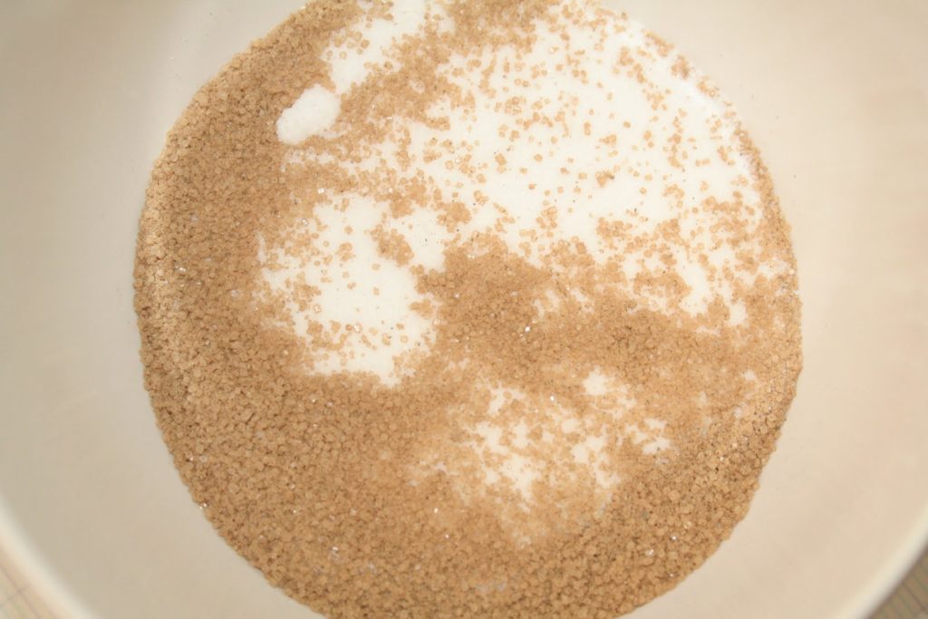 - Mélanger le sucre et le sucre vanillé.