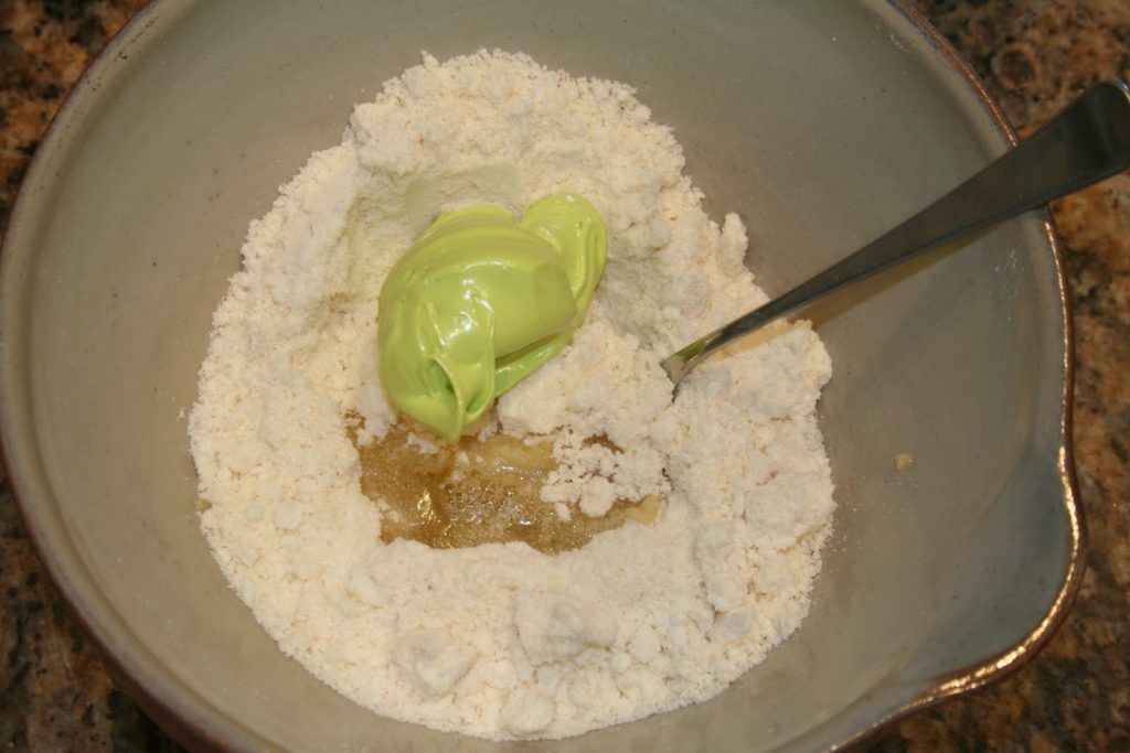 Ajouter ensuite au fur et à mesure le reste en mélangeant cette fois délicatement comme on le ferait pour une mousse, c’est à dire en soulevant la pâte!