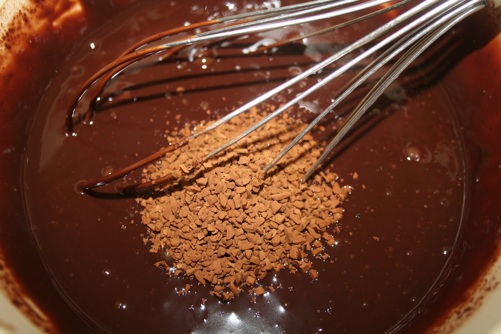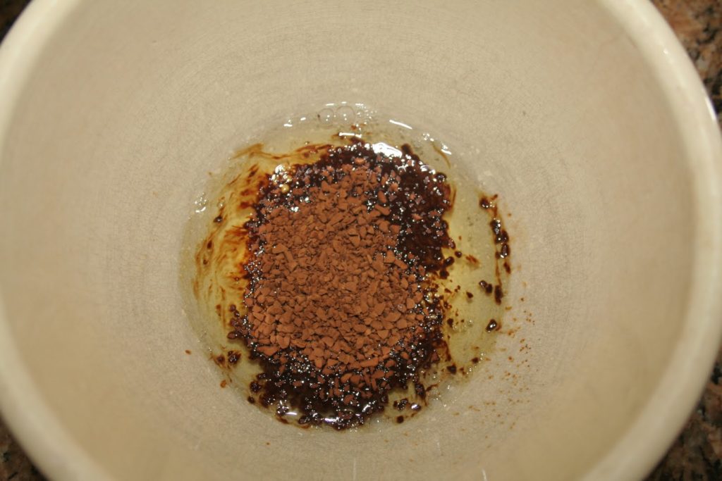- Ajouter le café soluble dans la ganache encore chaude. On peut sans doute être plus logique que moi ce jour-là et mettre le café dans la crème chauffée, avant de la verser sur le chocolat! Mais cela marche dans les deux cas.