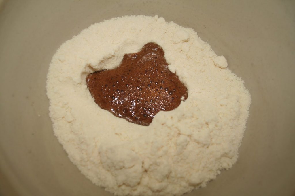 - Commencer par réaliser une recette de macarons. Voir ici pour la recette en images. À la différence qu’il faut ajouter le café soluble dans les blancs d’œuf qui vont dans le tant pour tant.