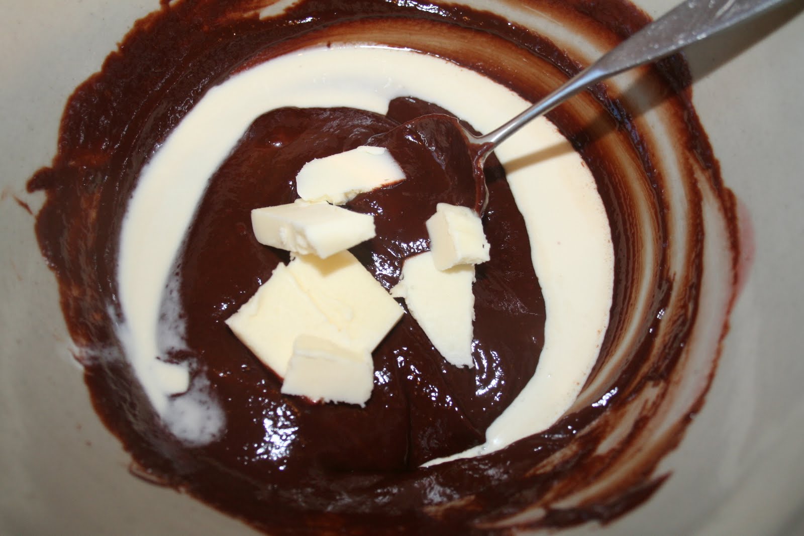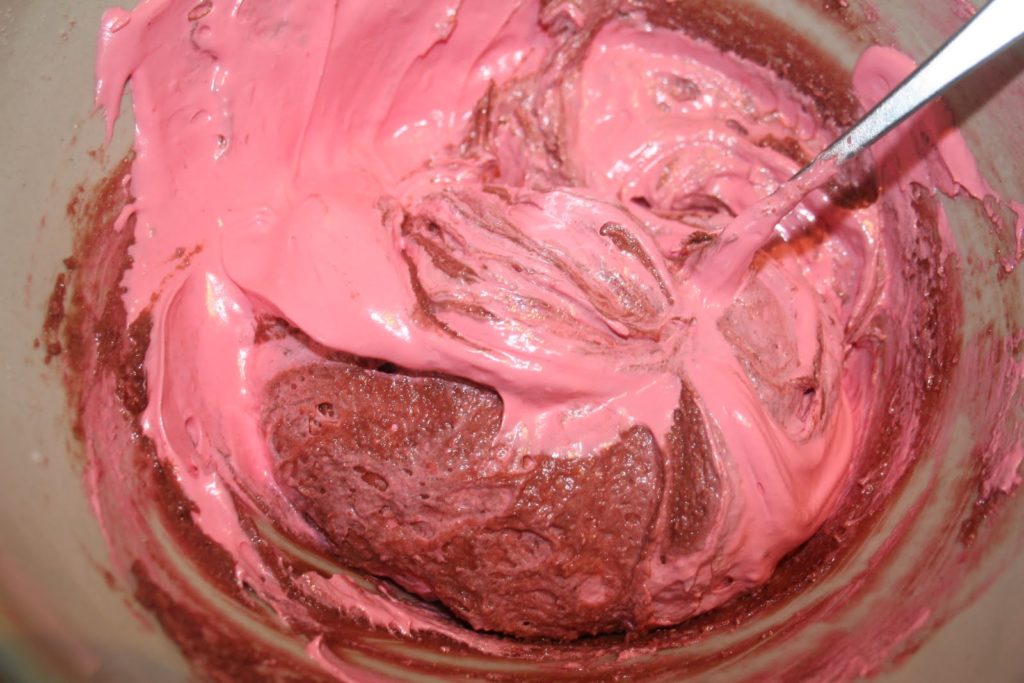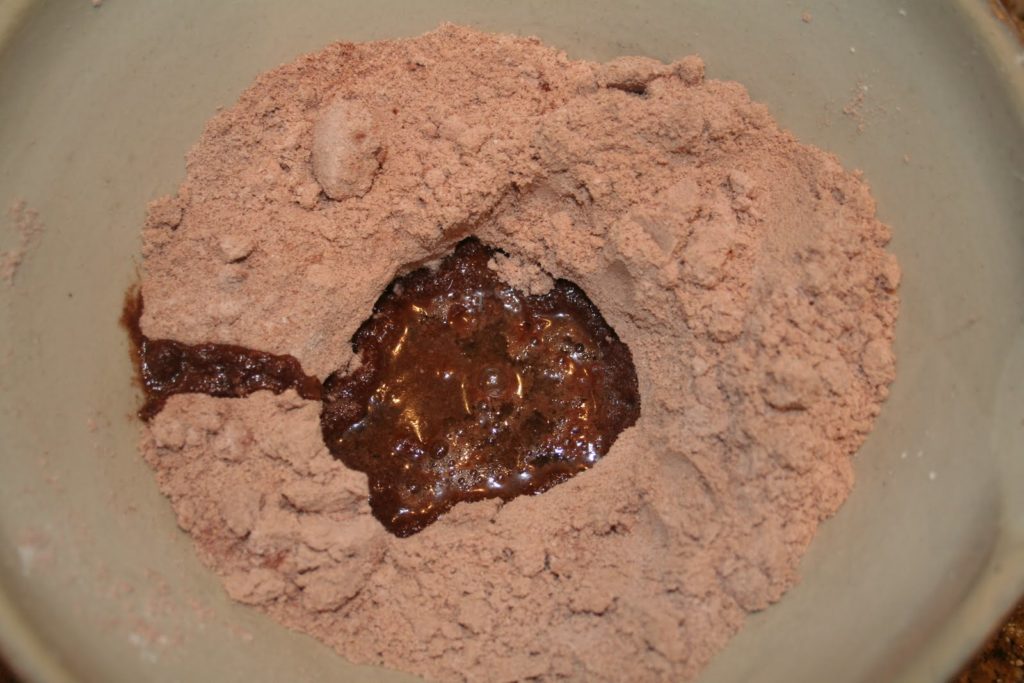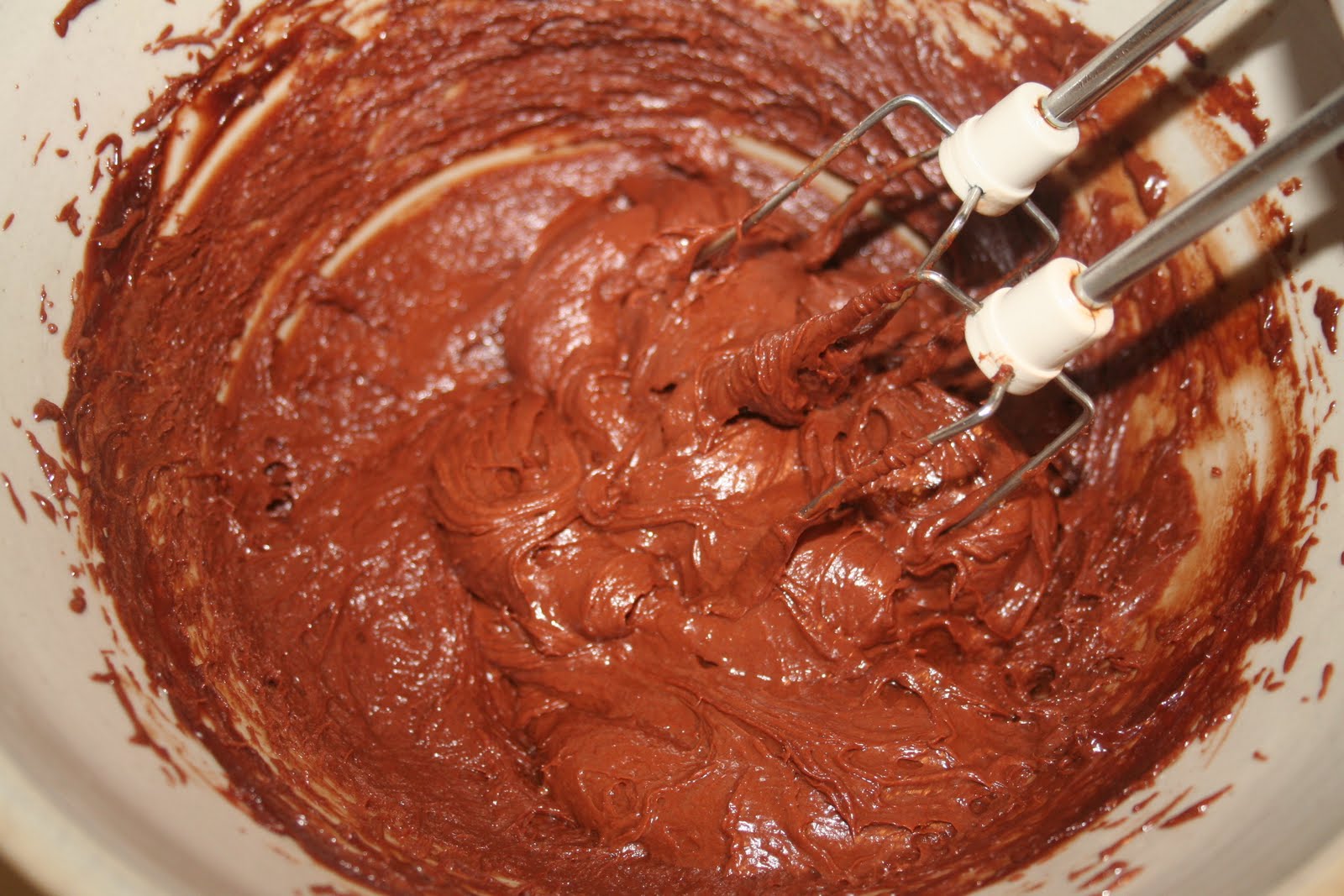 On obtient un tant pour tant chocolaté (il y a le blanc d’œuf cru dedans!).