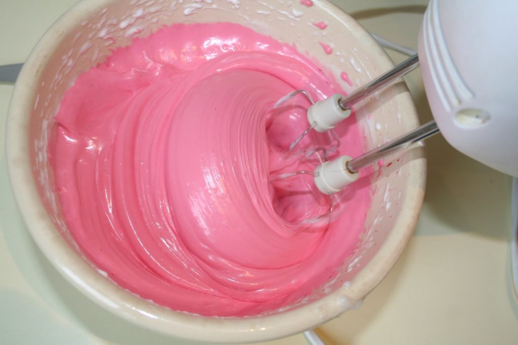 - Et ajouter dans la meringue italienne, deux ou trois pointes de couteau de colorant rouge en poudre. J’ai mis du rouge groseille (pour les macarons tout chocolat mettre 1 pointe de couteau de colorant rouge).