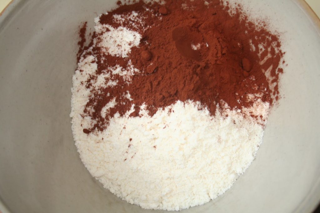 Préparer la recette de base de macaron. Ajouter avant de tamiser dans les 300g de tant pour tant, 15g de cacao non sucré (pour les macarons tout chocolat, mettre 30g!).