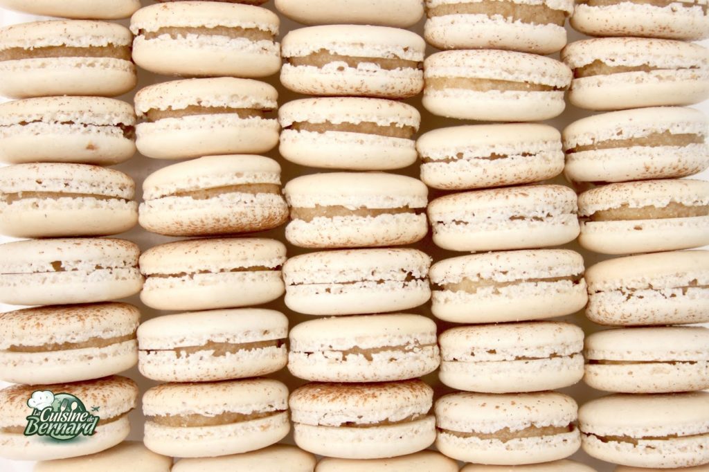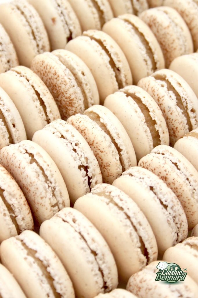 - Mettez la garniture en poche à douille puis remplissez les macarons sans cannelle. Collez deux à deux ensuite avec un macaron cannelle. Mettez en boite hermétique au frais pour une nuit avant de déguster !