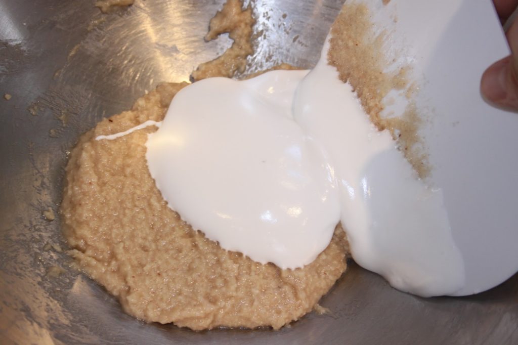 Commencez par préparer la pâte à macarons nature comme expliqué dans ma recette de base ICI. La seule différence est qu’il faut ajouter 1/4 de cuillerée à café de cannelle dans le mélange poudre d’amandes/sucre glace.