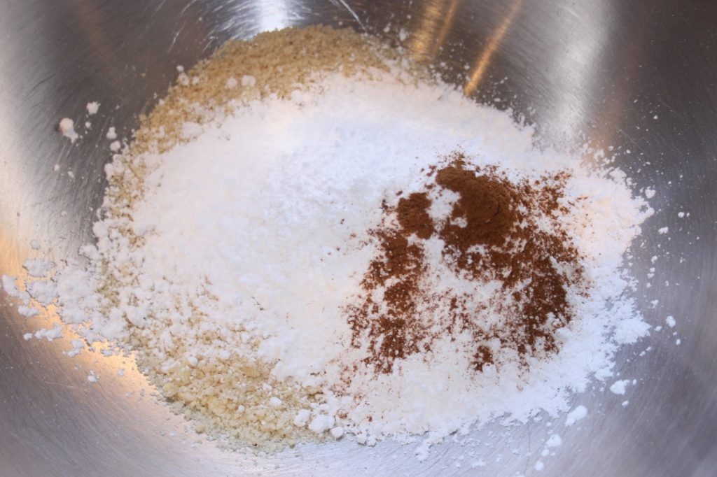 - Commencez par préparer la pâte à macarons nature comme expliqué dans ma recette de base ICI. La seule différence est qu’il faut ajouter 1/4 de cuillerée à café de cannelle dans le mélange poudre d’amandes/sucre glace.