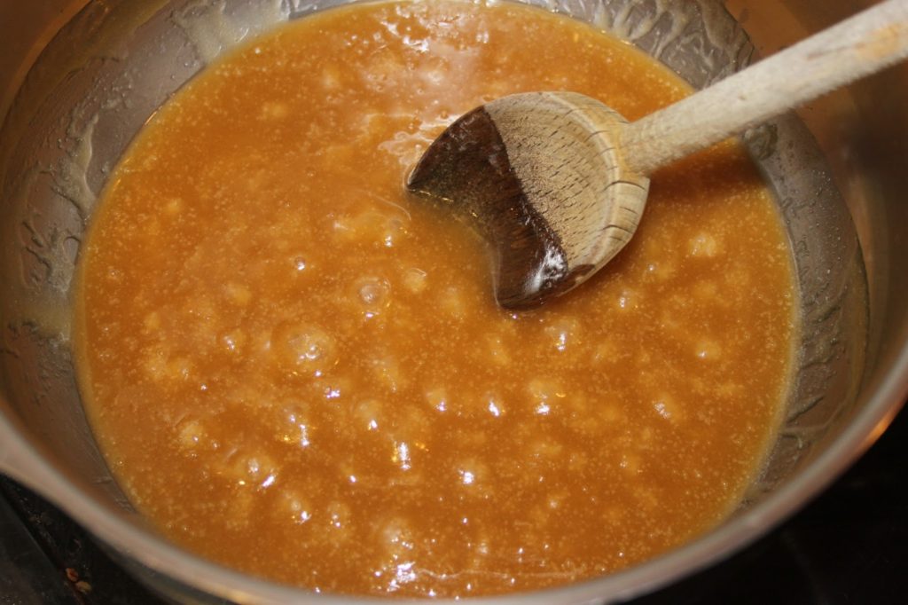 - Préparer le caramel en mettant le sucre de canne blond (un sucre très mou ou vergeoise blonde), le sel et le beurre dans une casserole.