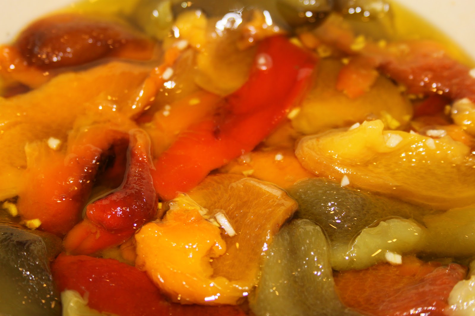 Égoutter les poivrons sur un papier absorbant (il ne faut pas enlever toute l’huile non plus, juste l’éxcedent!!).