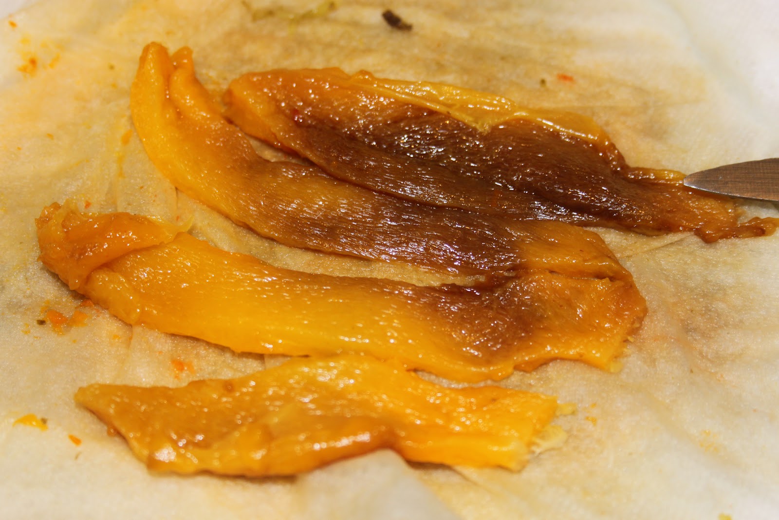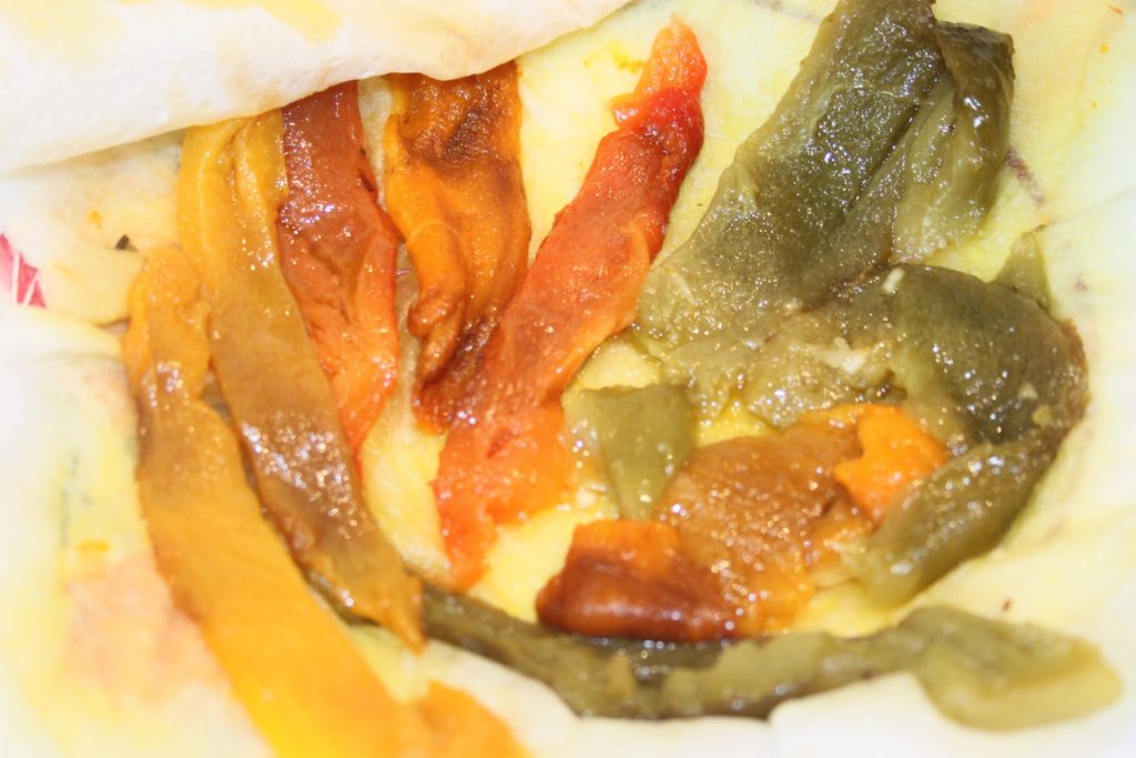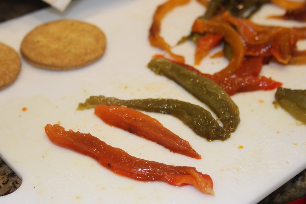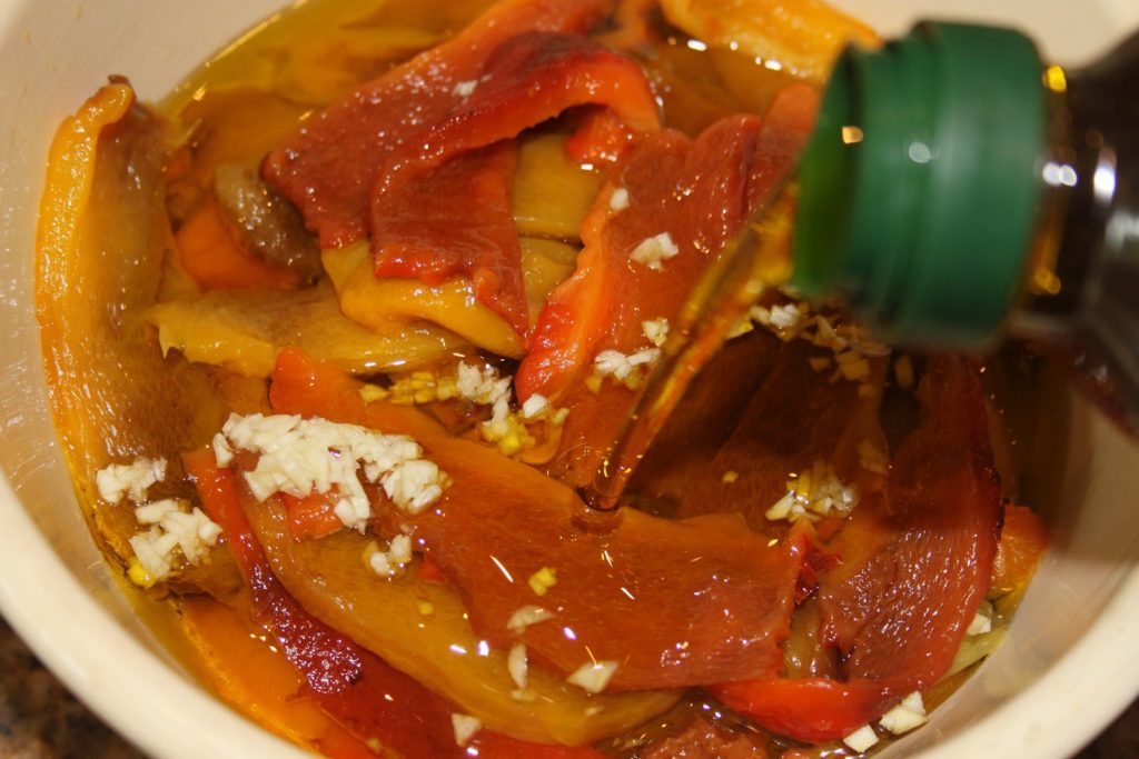 - Égoutter les poivrons sur un papier absorbant (il ne faut pas enlever toute l’huile non plus, juste l’éxcedent!!).