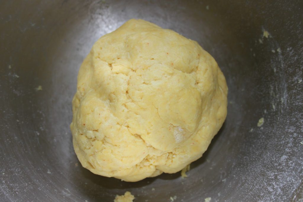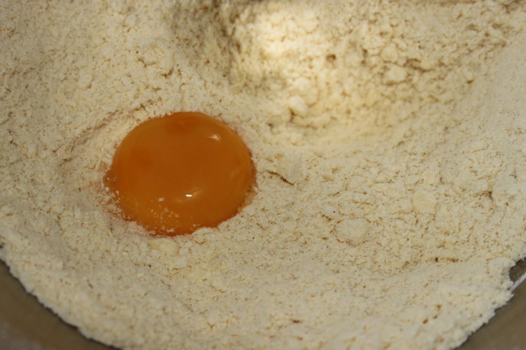 Avec un robot, c’est toujours plus facile! Il faudra utiliser la feuille (le « K » du kitchenaid ou du kenwood). Mélanger jusqu’à ce que le tout soit sableux. Ajouter le jaune d’oeuf.