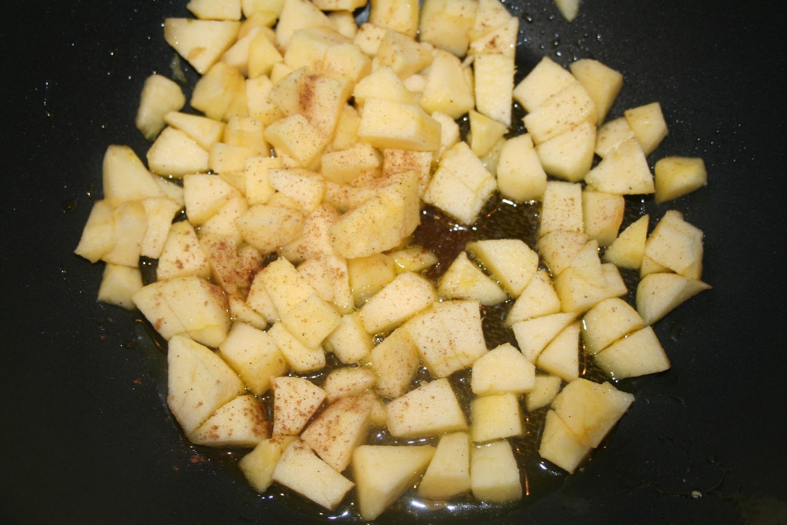 Mettre la poêle sur feu assez fort (en surveillant quand même!!). Ajouter les pommes dans le gras fondu.