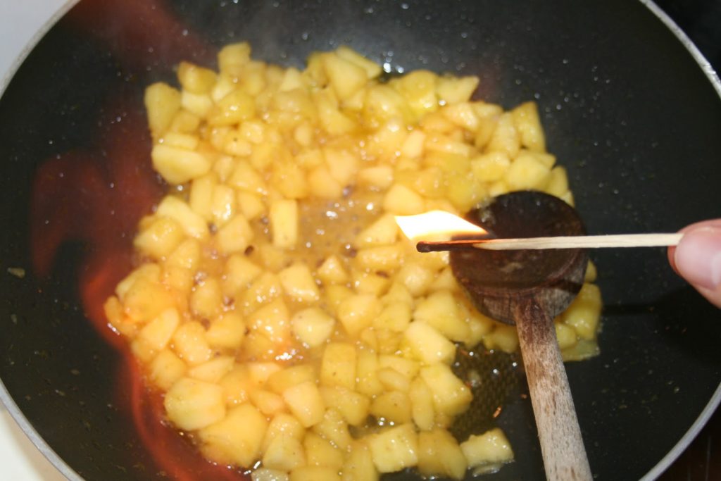 Puis flamber! Depuis petit, j’aime ce moment où l’on flambe le contenu d’une poêle!