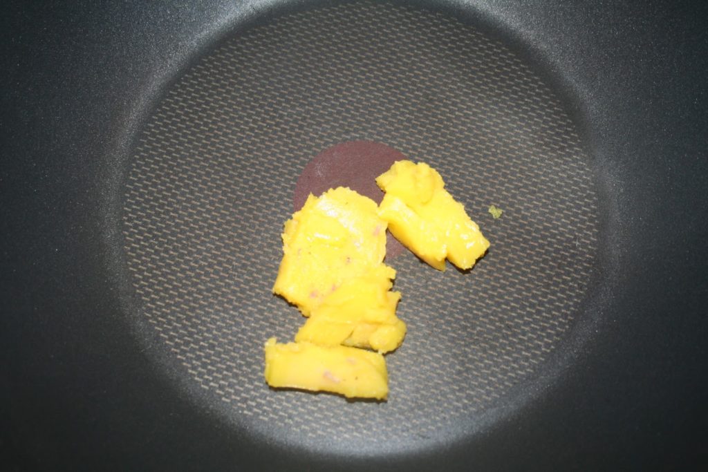 Pour cuire les pommes, utiliser le gras jaune des tranches de foie gras. En mettre l’équivalent d’une cuillerée à soupe.