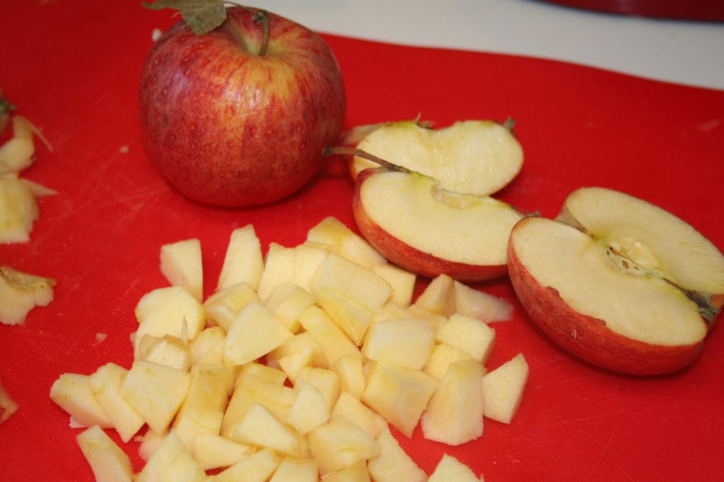Couper les pommes en quartiers puis en petits morceaux.