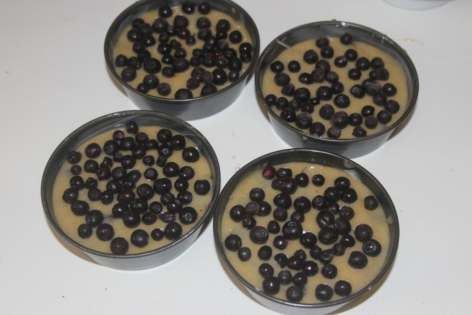 - Ajouter deux cuillerées à soupe de pâte (un fond) puis ajouter des myrtilles.