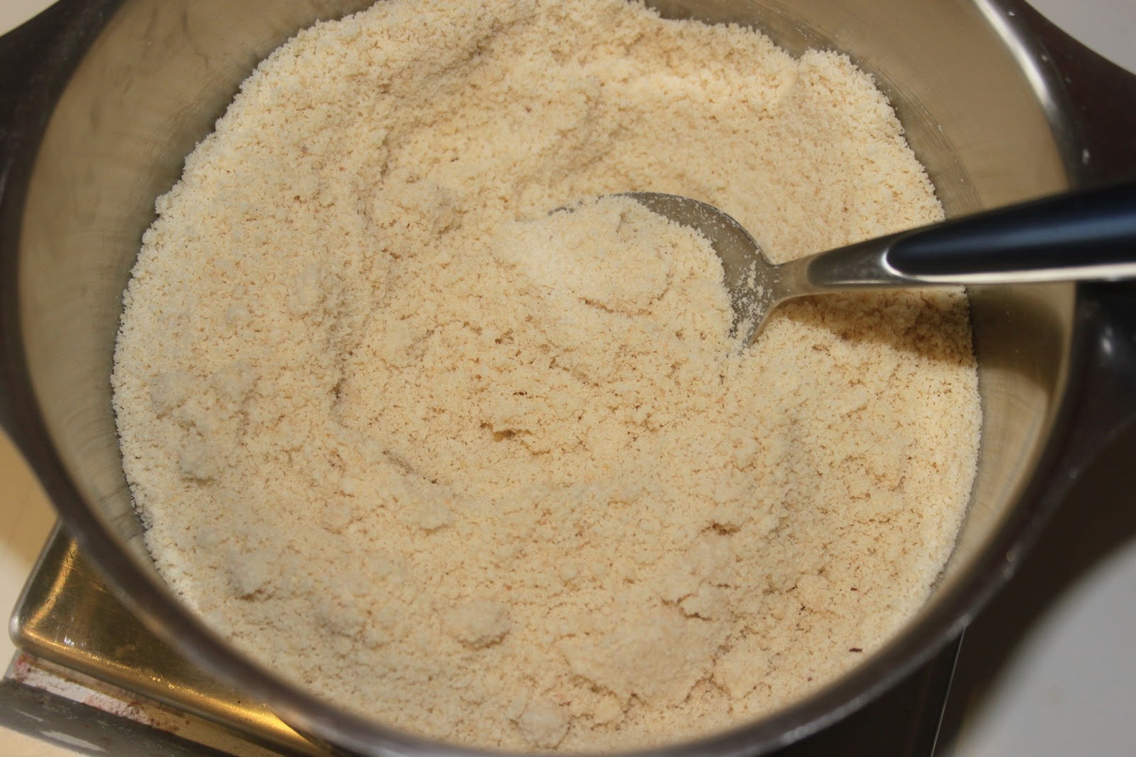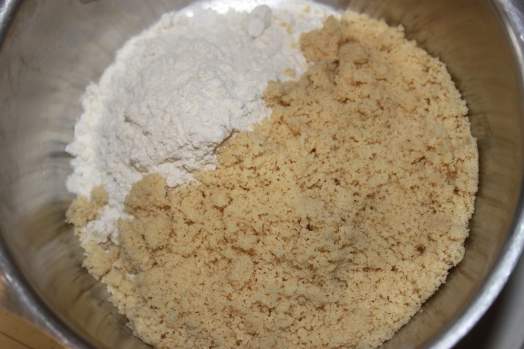 - Mélanger la poudre de noisettes et la farine dans un bol.