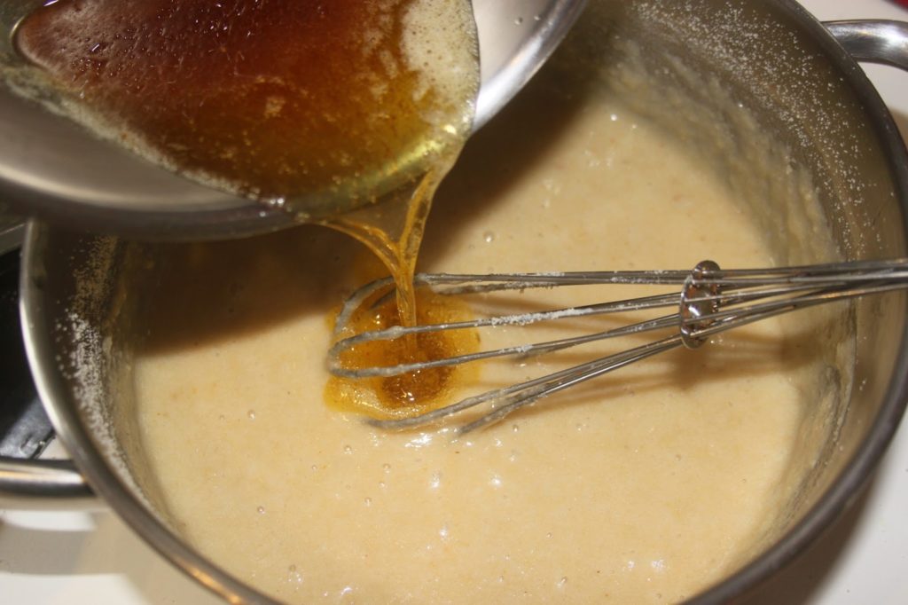 - Hors du feu, ajouter la farine/poudre de noisettes.