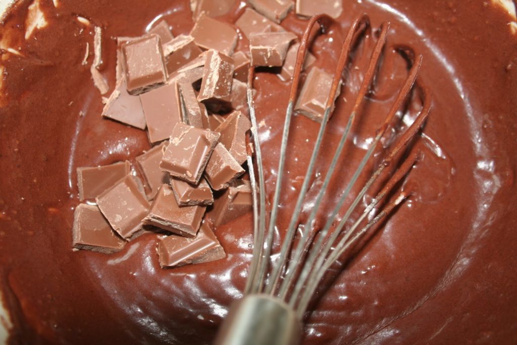 - Ajouter le chocolat au lait en morceaux (on peut couper du lindt lait en morceaux!).