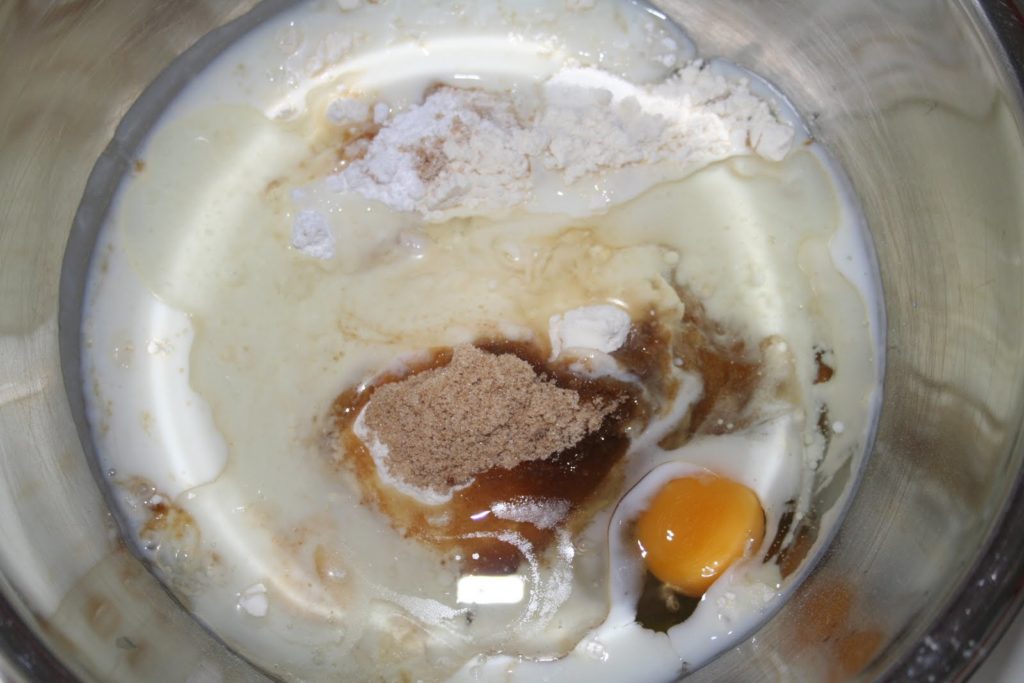 - Commencer par mélanger tous les ingrédients sauf la levure, les framboises et le chocolat blanc.