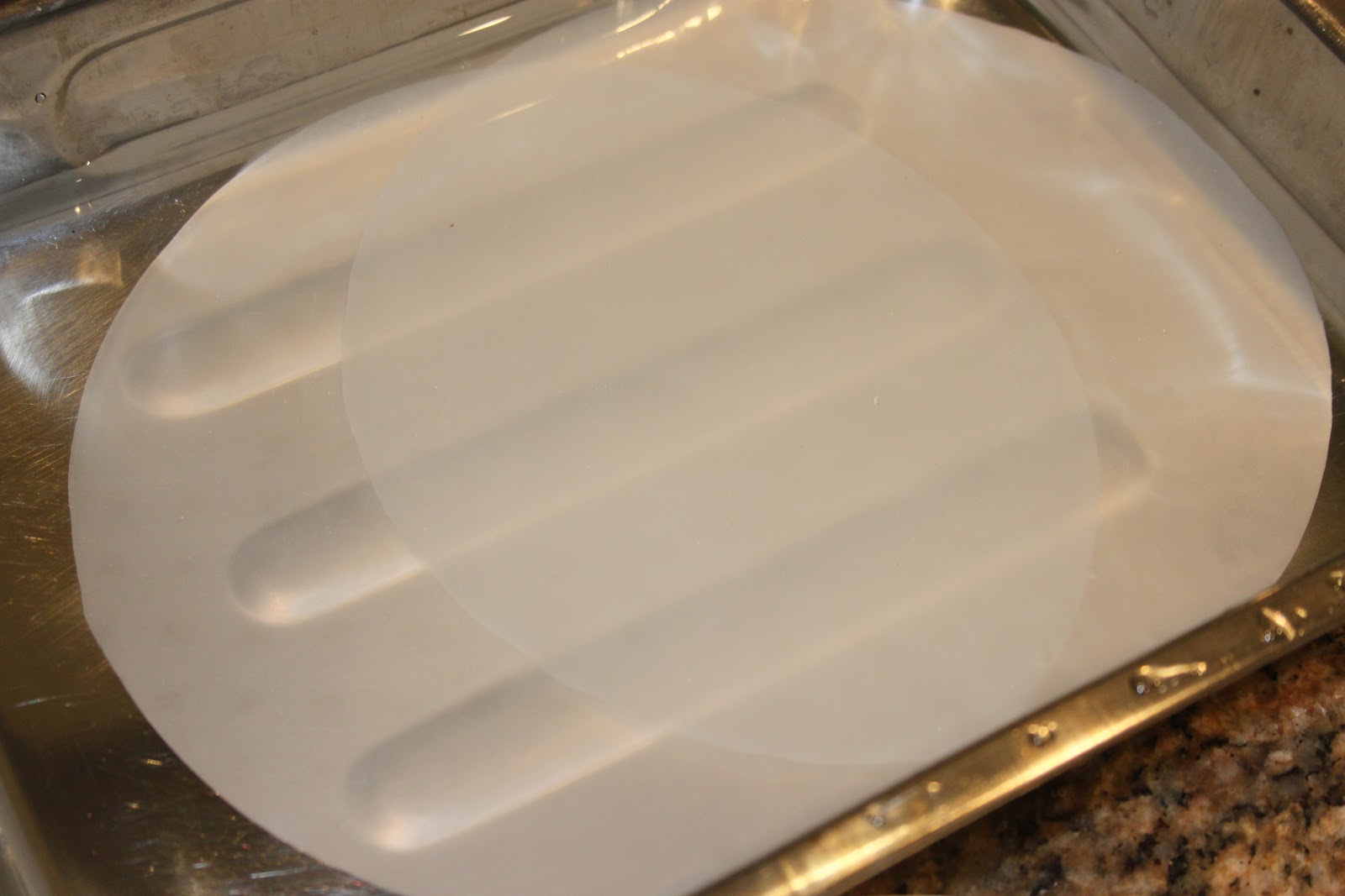 - Faire tremper les galettes de riz dans de l’eau froide. Je les fais tremper par 3 ou 4.
