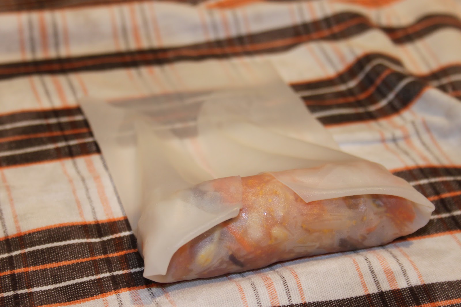 - Il suffit maintenant de faire la même choses pour tous les autres nems! Pour éviter que les nems ne gonflent, il suffit de les mettre à ce stade au réfrigérateur crus une nuit. De cette façon, la pâte de riz va se raffermir et éviter un gonflement excessif!