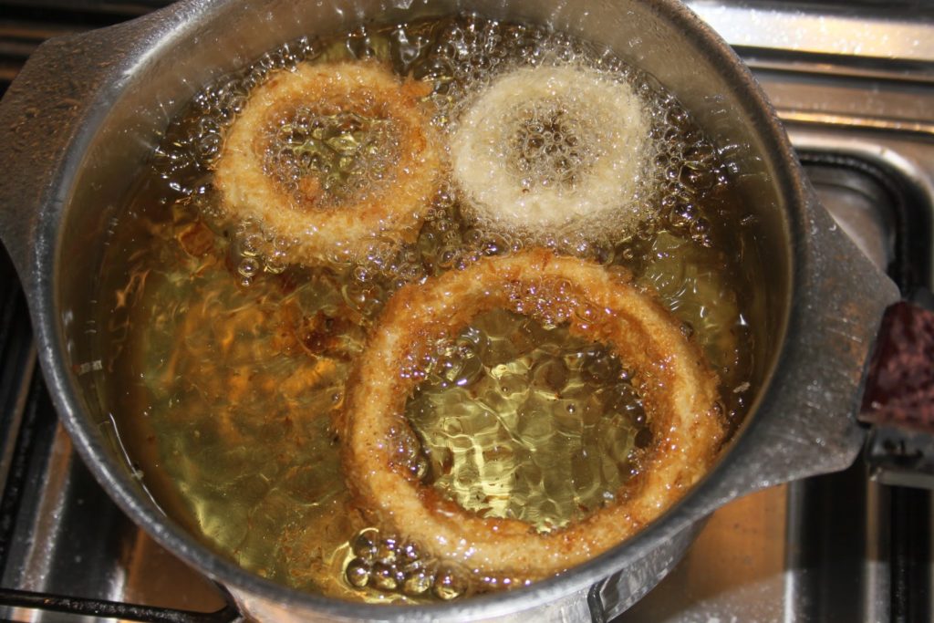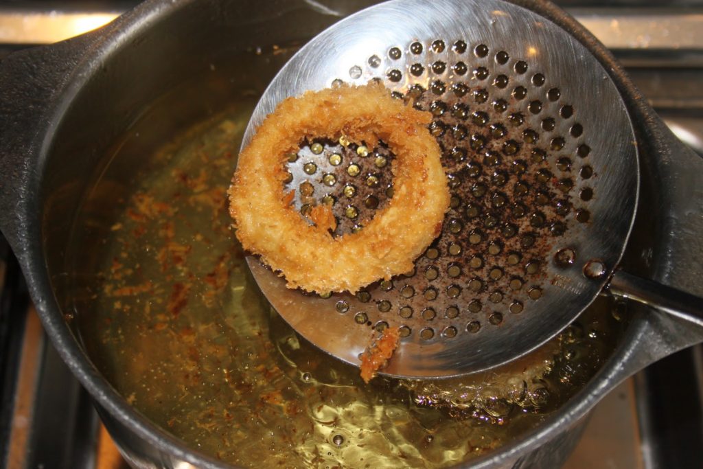 - Passer les « onion rings » à la friture bien chaude.