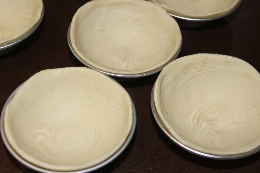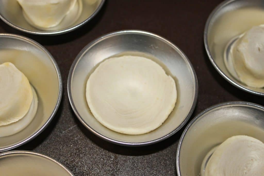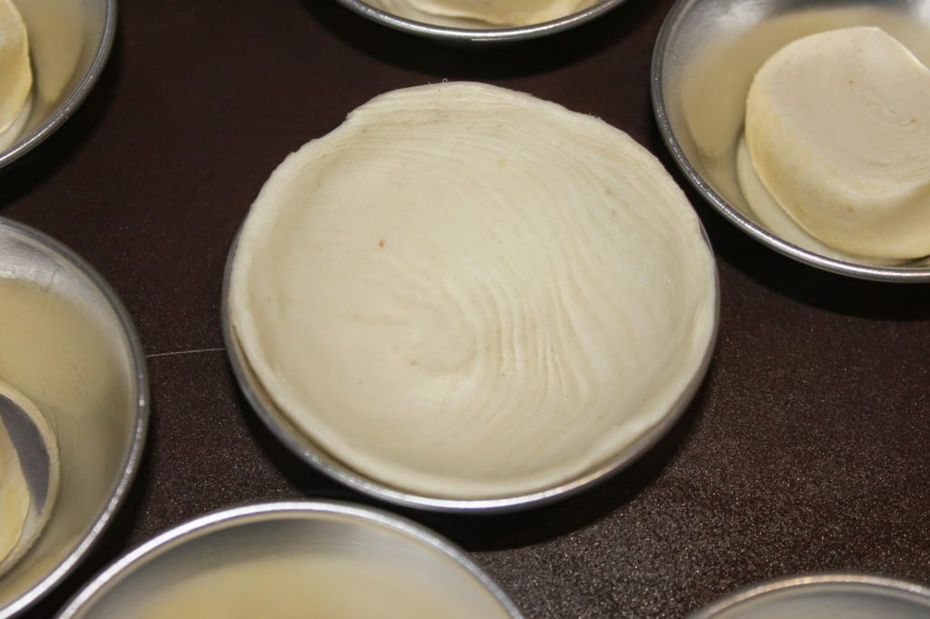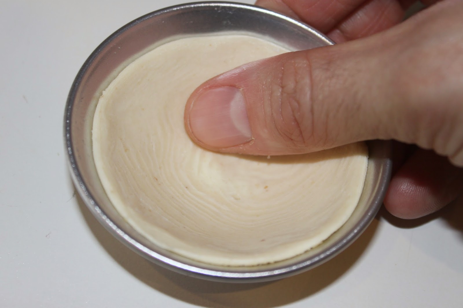 - Puis avec vos pouces, poussez la pâte vers le haut tout en tournant le moule.