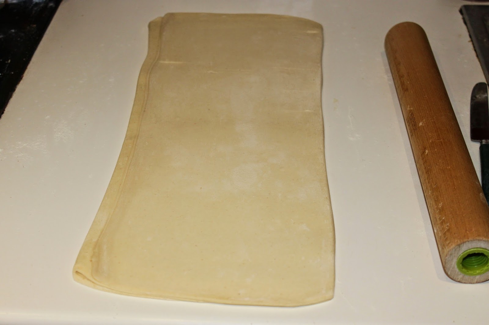 Vous venez de faire un tour simple. Tournez la pâte de 90° puis étalez de nouveau en un rectangle trois fois plus long que large.