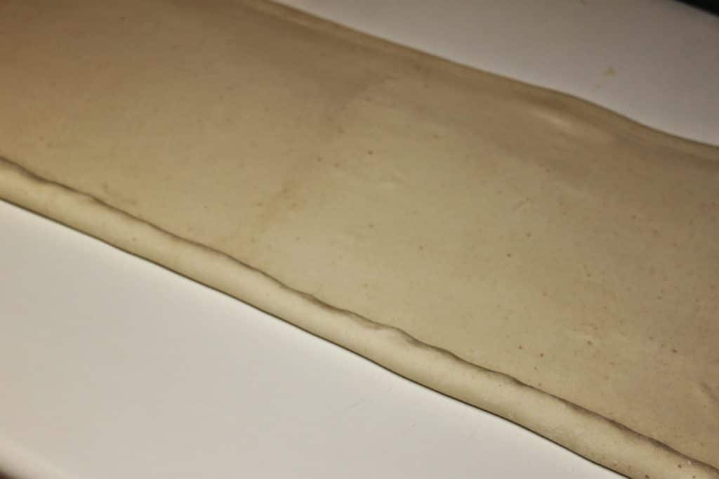 Commencez une amorce d’enroulement de pâte sur la longueur.
