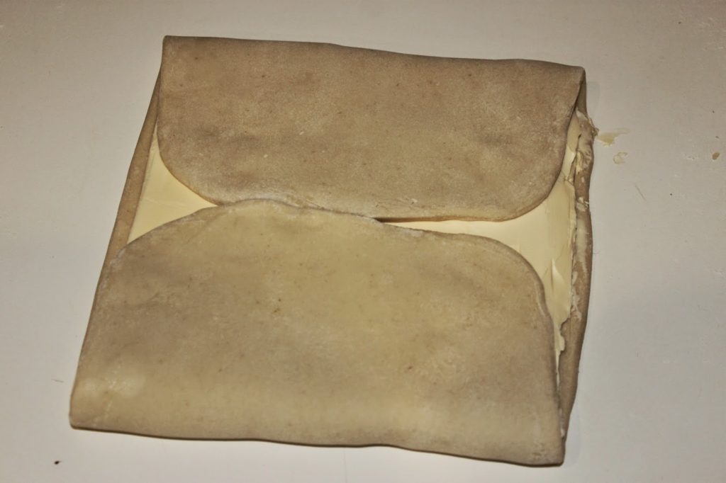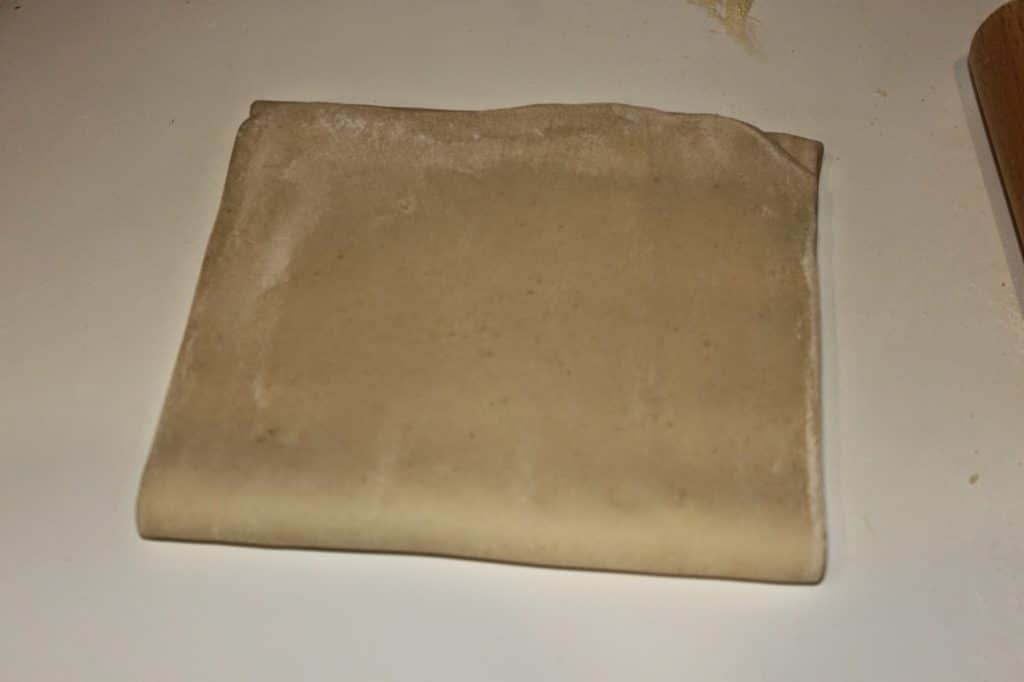 - Vérifiez qu’en rabattant la pâte vers le centre, vous obteniez bien un carré.