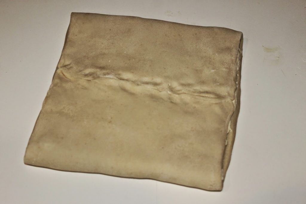 - Marquez la pâte là où vous aviez les plis (on voit sur la photo le carré central). Cela vous servira à y placer la matière grasse.