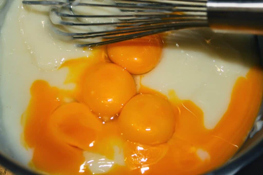 - Laissez tiédir une bonne demi-heure puis ajoutez les 175g de jaunes.