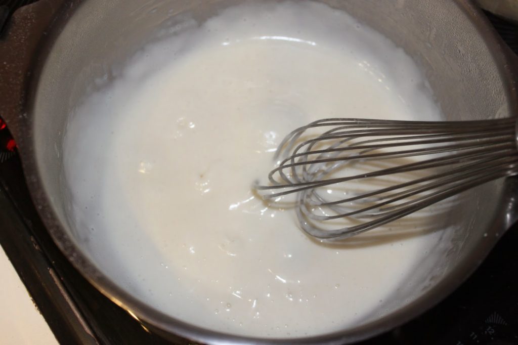 - Portez à ébullition tout en fouettant sur feu doux. La crème épaissit. Une fois que cela bout, c’est prêt !