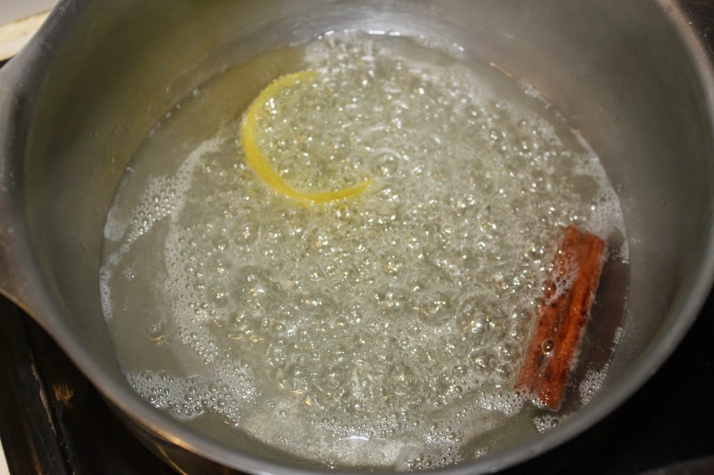 - Portez à ébullition puis faites monter la température du sirop à 105°C. En gros, sans thermomètre, cela prend 5 minutes à gros bouillon.