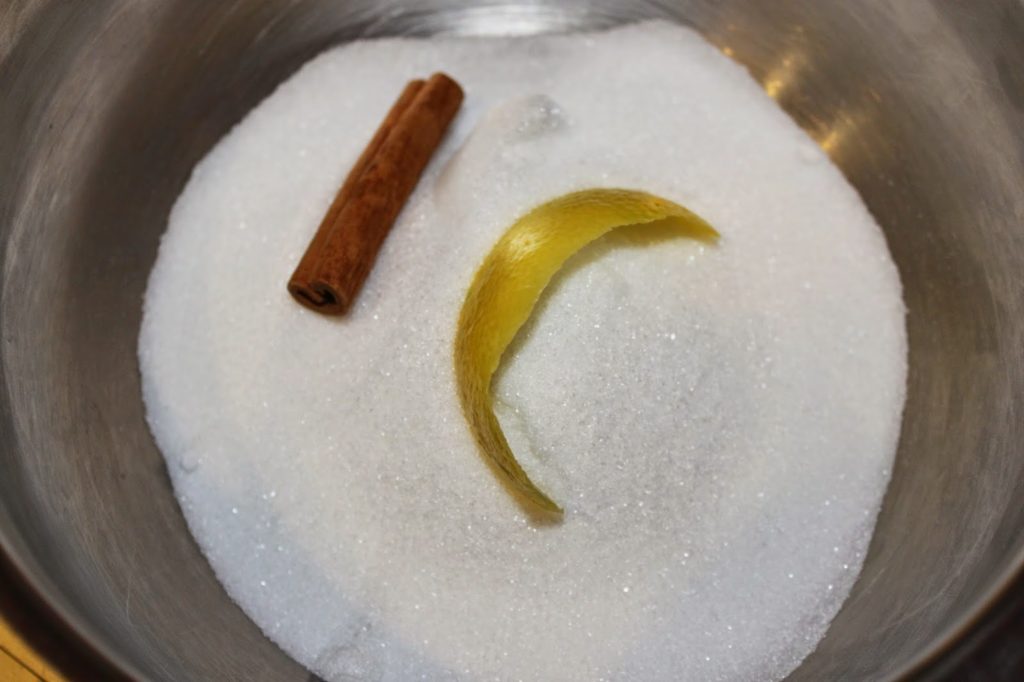 - Une fois qu’il est bien incorporé, ne mélangez plus trop la crème. Le fait de la fouetter trop l’abimerait à la cuisson au four. Vous remarquerez que j’ai laissé le citron et la cannelle. On les enlèvera au moment de verser la crème dans les moules.