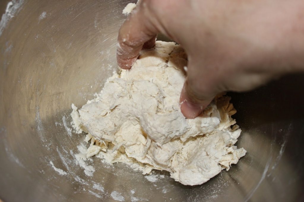 - Commencez à mélanger à la main pour bien sentir si la farine a besoin d’un petit plus d’eau. Si vous pétrissez directement à la machine, l’eau va s’agglomérer autour du crochet et le pâte ne se formera pas. Il vous faudra ajouter de l’eau alors qu’en réalité elle n’en n’a pas forcément besoin. Donc commencez du bout des doigts puis ajoutez un tout petit peu d’eau seulement si la pâte en a besoin.