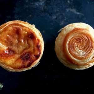 À température ambiante, elle devient très malléable et vous pourrez faire la pâte feuilletée sans difficulté. C’est même un véritable plaisir de la faire. Vous vous dites sans doute que le goût va être bizarre: étrangement non pas du tout !! Personne ne pourrait se douter de cet ingrédient hors norme. Pour ce qui est de sa composition, d’accord, ce n’est pas l’idéal, mais en même temps, on ne mange pas de pastéis tous les jours non plus… Et le craquant est tellement inimitable que cela vaut bien quelques entorses à notre beurre. En un mot, je vous demande de me faire confiance sur ce coup là ! Cela fonctionne à merveille et les pastéis sont parfaits !