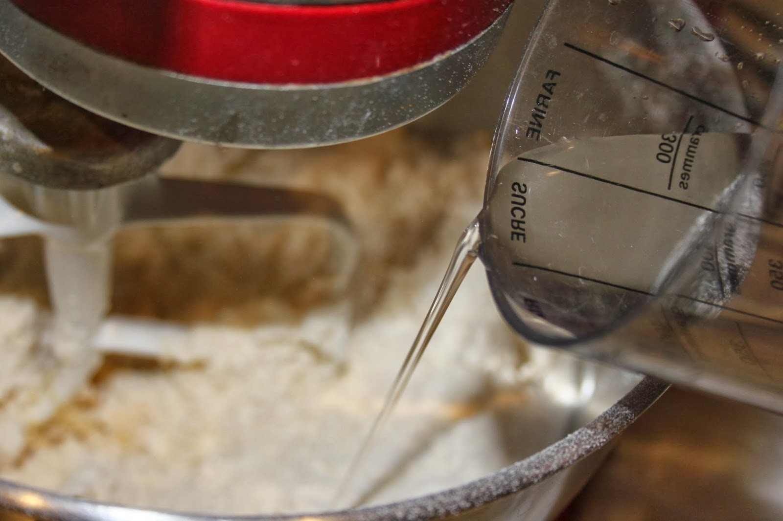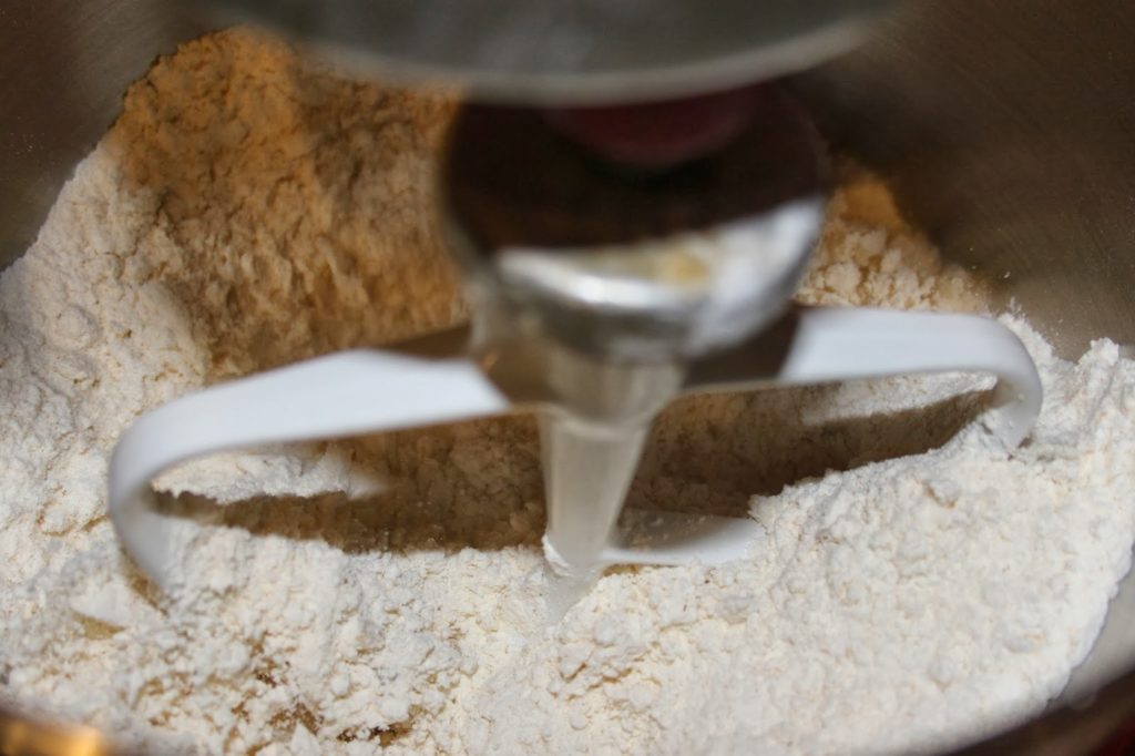 - Ajoutez progressivement l’eau. La quantité dépendra de la farine utilisée et de la taille des œufs.